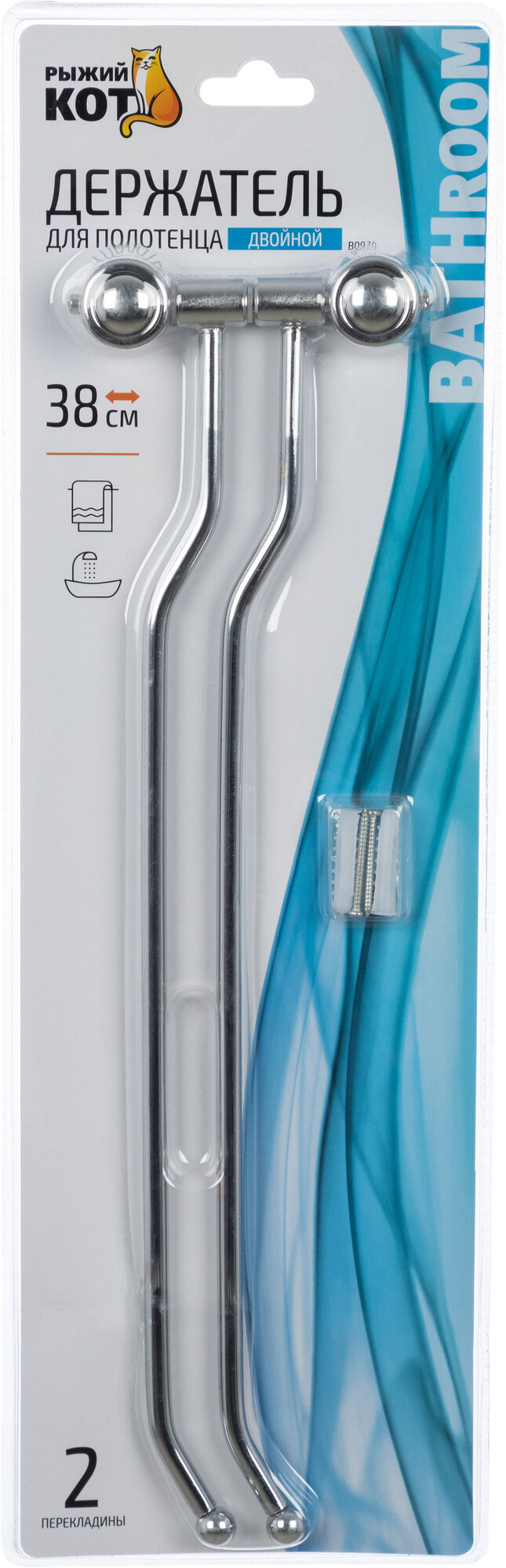 Рыжий кот Держатель для полотенца двойной B0924 хром.металл, пластик, крепление: шуруп 002485