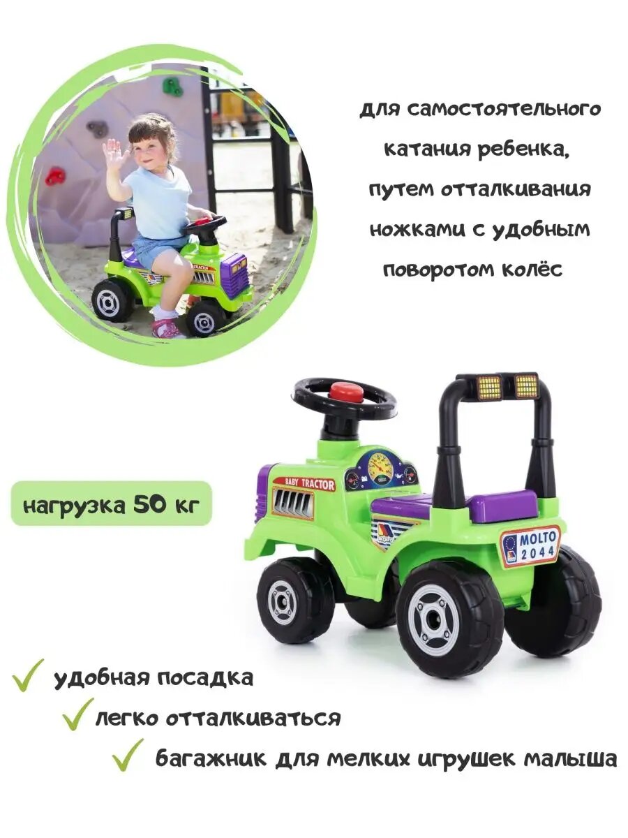 Каталка-толокар Molto Трактор Митя (7956), зеленый