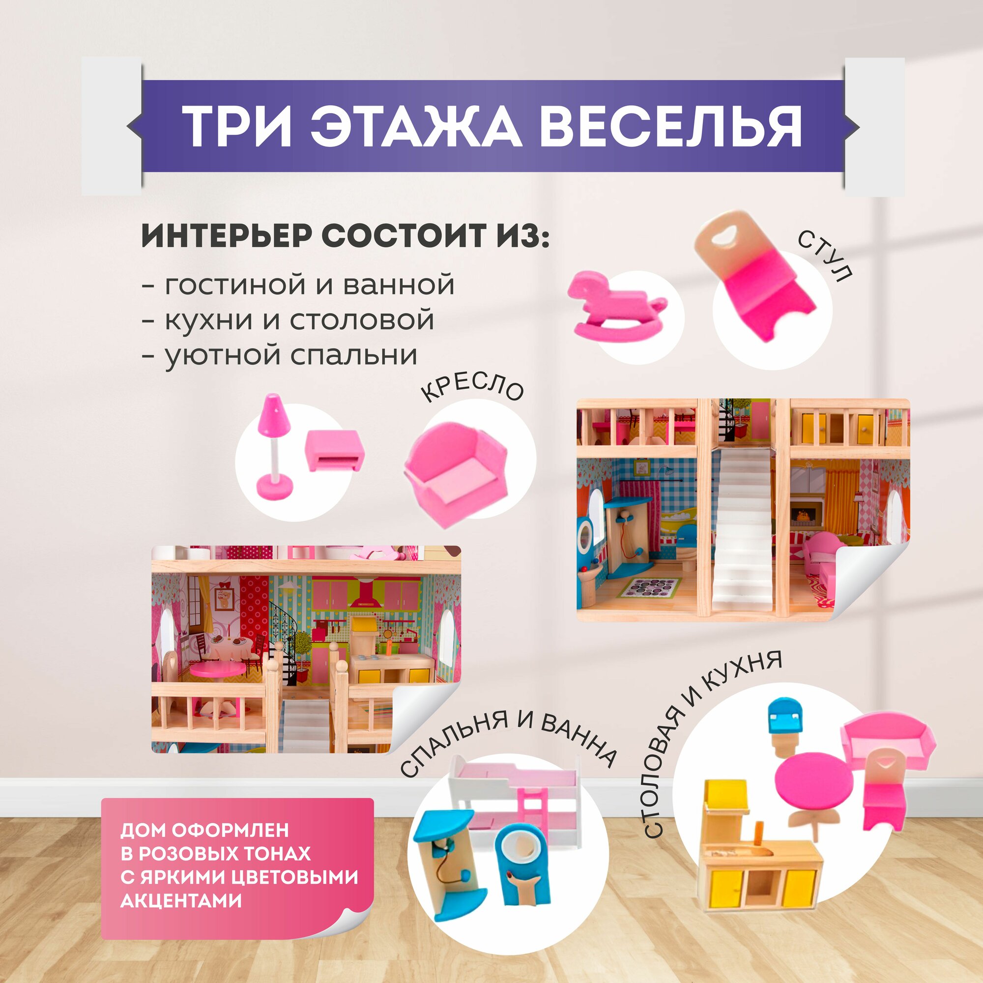 Домик для кукол EDUFUN EF4109 90 См с мебелью, большой домик интересное: