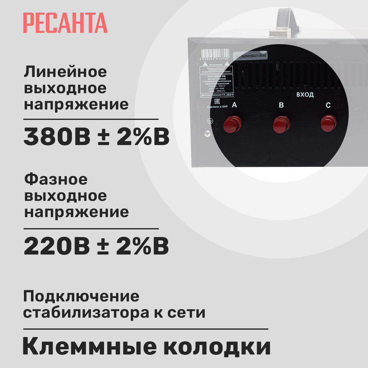 Стабилизатор напряжения РЕСАНТА ACH-4500/3-ЭМ .