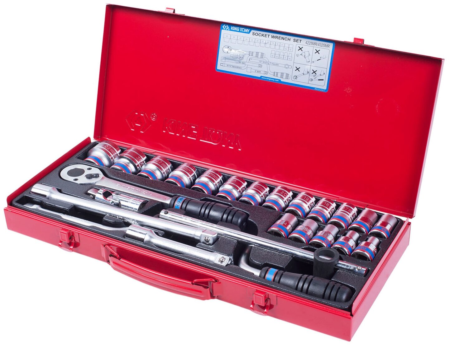 4325MR KING TONY Набор торцевых головок с принадлежностями 1/2", шестигранные, 10-32 мм, 24 предмета 4325MR