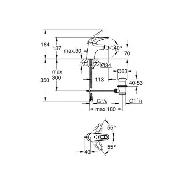 Смеситель для биде GROHE Eurostyle new 33565003 со сливным гарнитуром