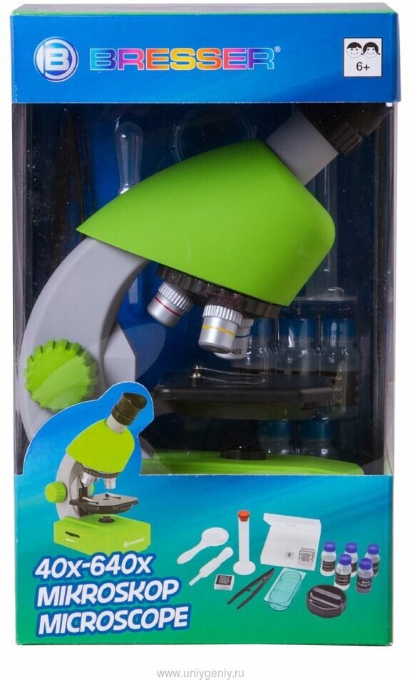 Купить Микроскоп BRESSER Junior 40-640x с набором для опытов зеленый