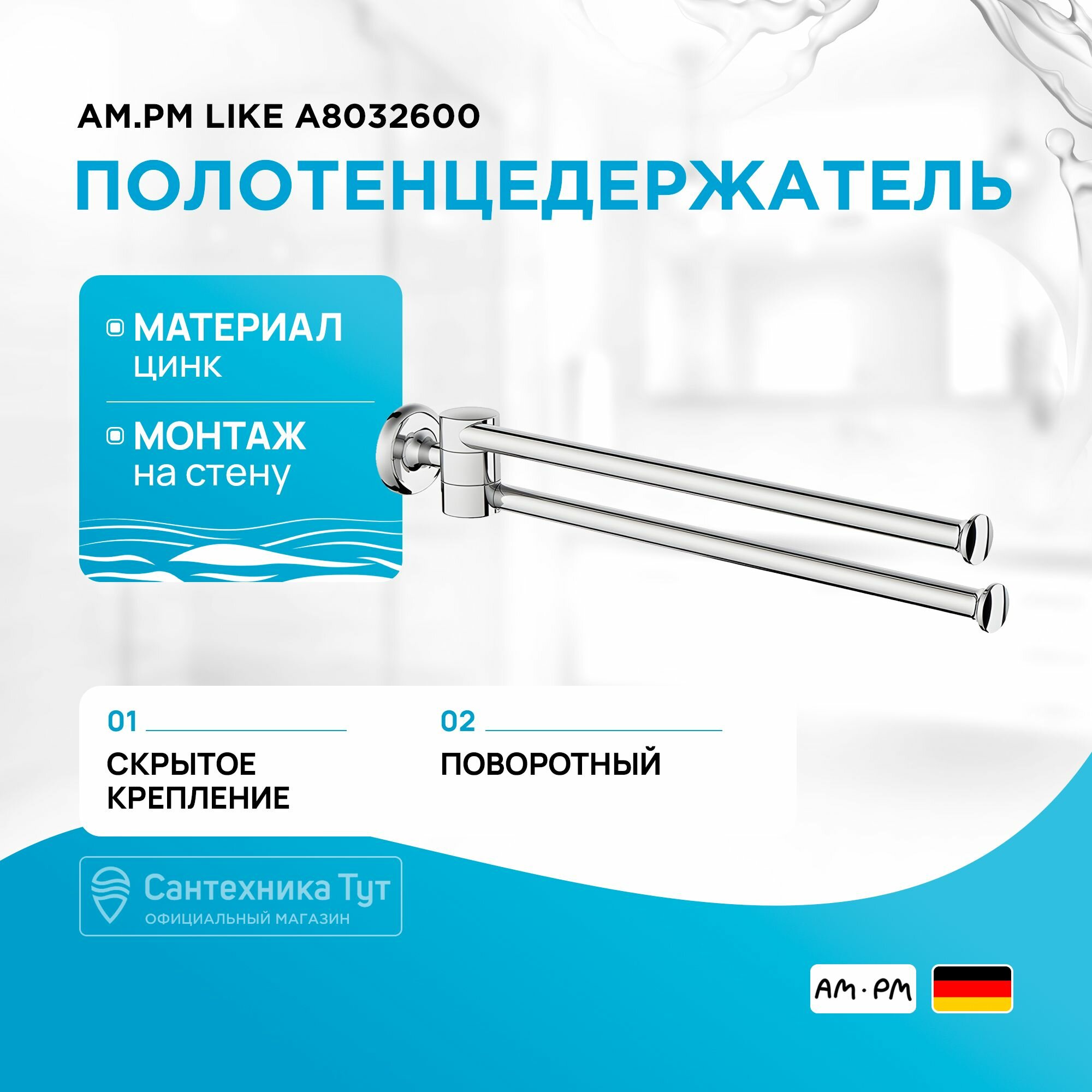AM.PM A8032600 Like, Двойная вешалка-вертушка для полотенец