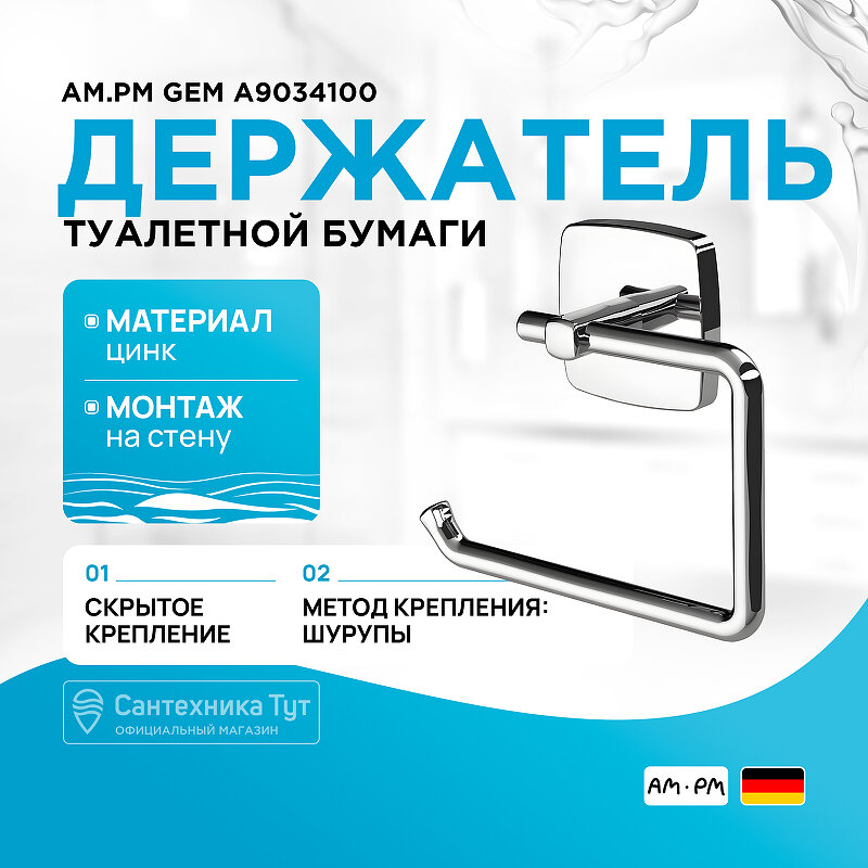 СохранитьДержатель для туалетной бумаги AM.PM Gem A9034100 интересное:
