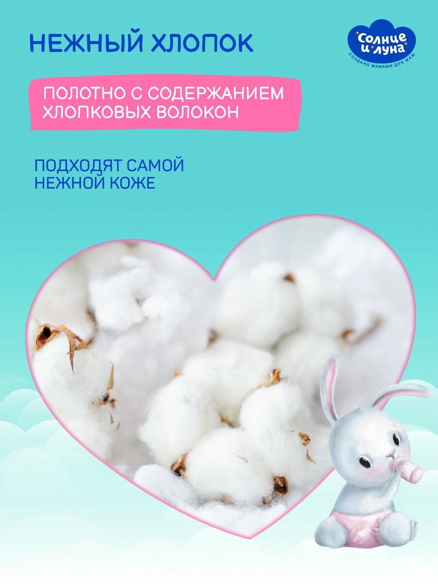 Солнце И луна ECO Влажные салфетки детские 0+ хлопковые нежная ромашка, 72x 4шт