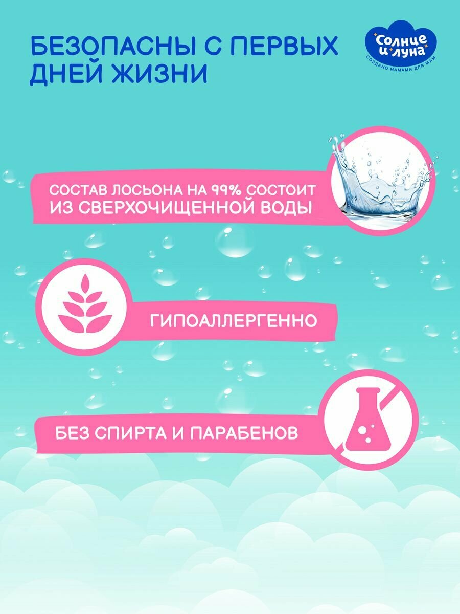Влажные салфетки детские с крышкой 360 шт (120 шт х 3), солнце И луна