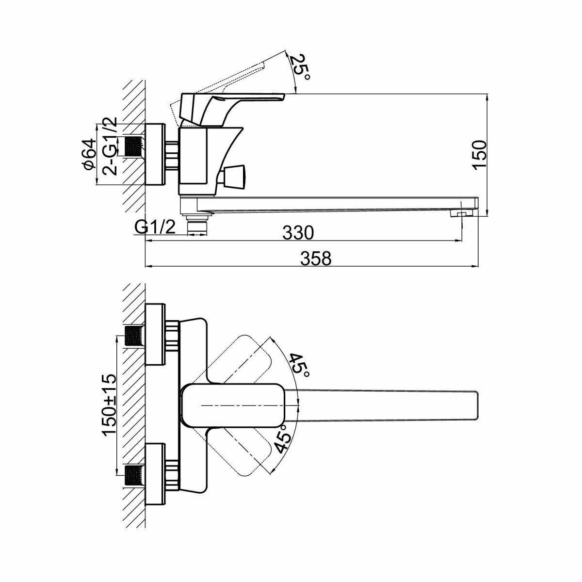 | Угол поворота рукоятки вертик. | 25 градусов |