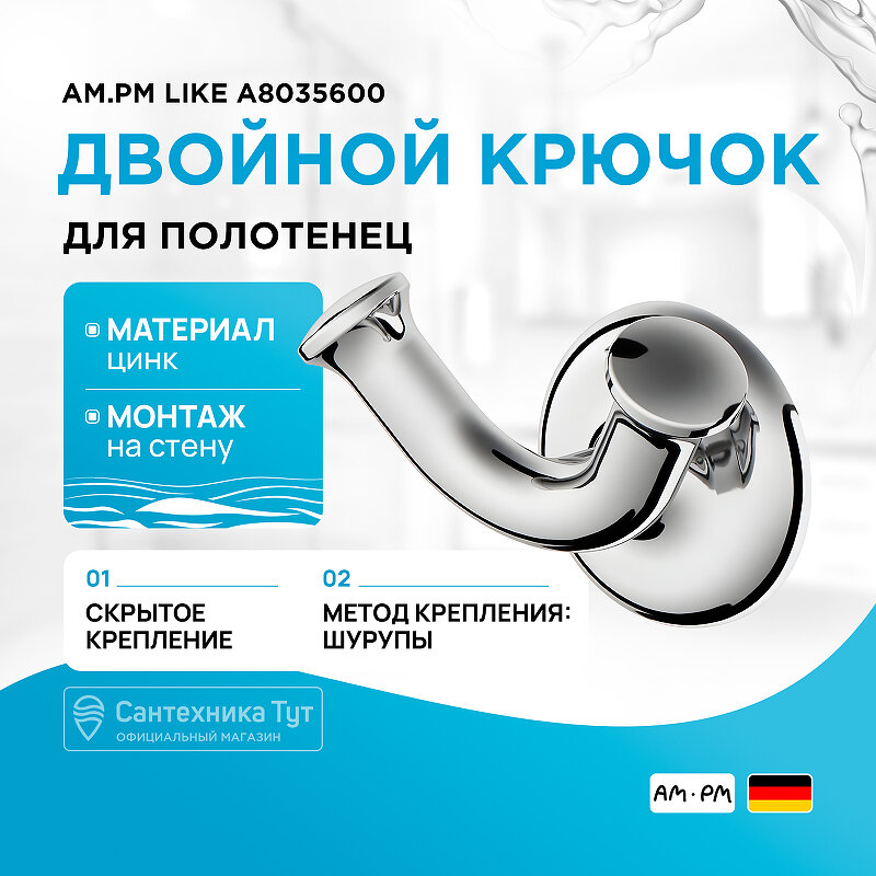 Аксессуар для ванной Am.Pm Like A8035600 Двойной крючок для полотенец