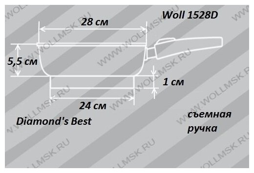 Сковорода WOLL (Германия) серия Diamond Titan Best, h-5, d-28 см (съемная ручка) интересное: