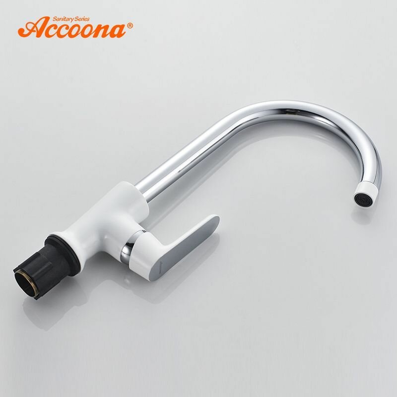 Accoona Смеситель для кухни Accoona A4566G, однорычажный, с гайкой, силумин, хром/белый
