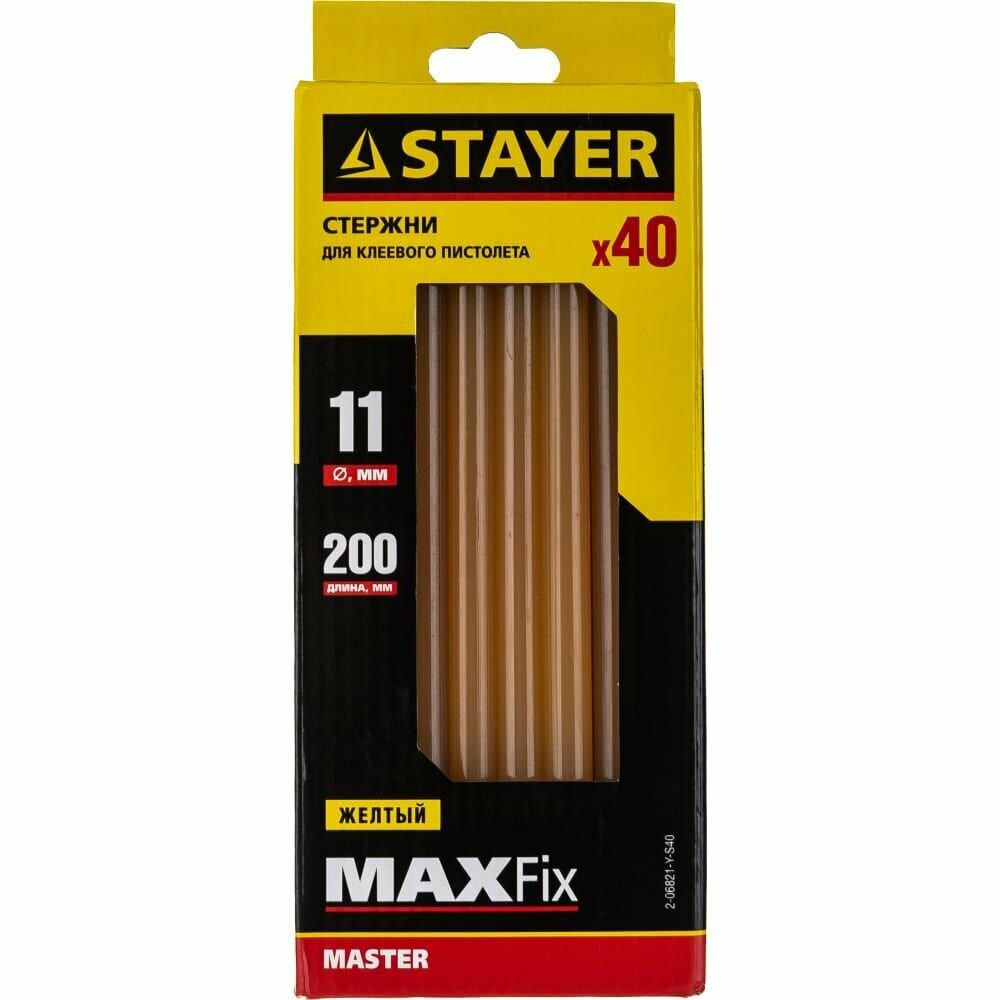 Стержни для клей-пистолетов Stayer 2-06821-Y-S40 11х200мм 40шт. желтый по бумаге и дереву 2-06821-Y