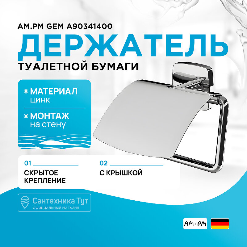Держатель туалетной бумаги с крышкой AM.PM Gem A90341400 Уцененный