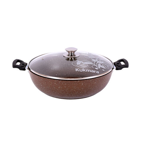 Сотейник 30см KUKMARA смк308а, алюминий, антипригарное, крышка стекло, кофейный мрамор