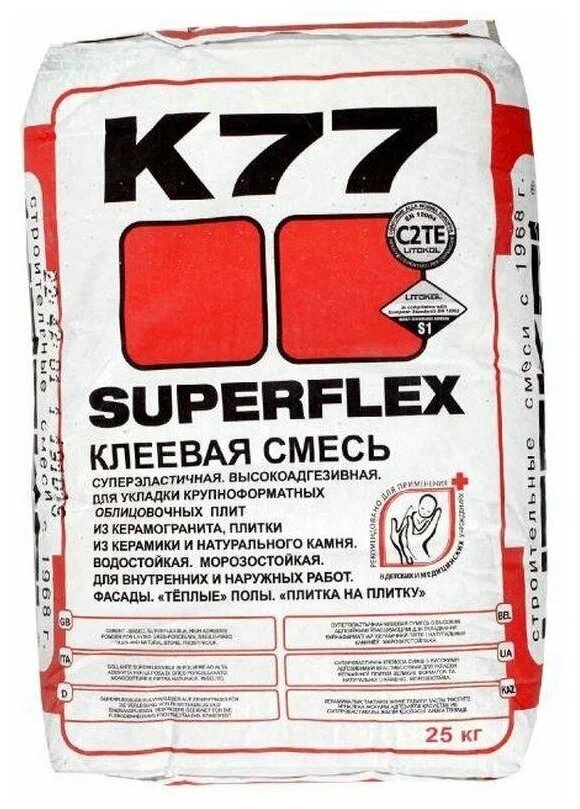Литокол K77 Суперфлекс эластичный клей для крупноформатных плит (25кг) / LITOKOL K77 Superflex суперэластичный клей для крупноформатных плит (25кг)