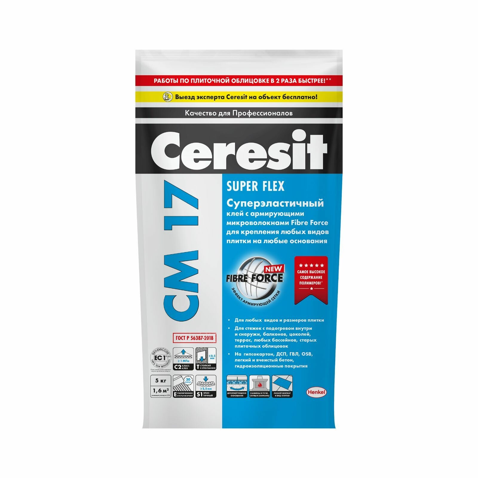 Клей для плитки суперэластичный Ceresit CM 17 Super Flex, 5 кг