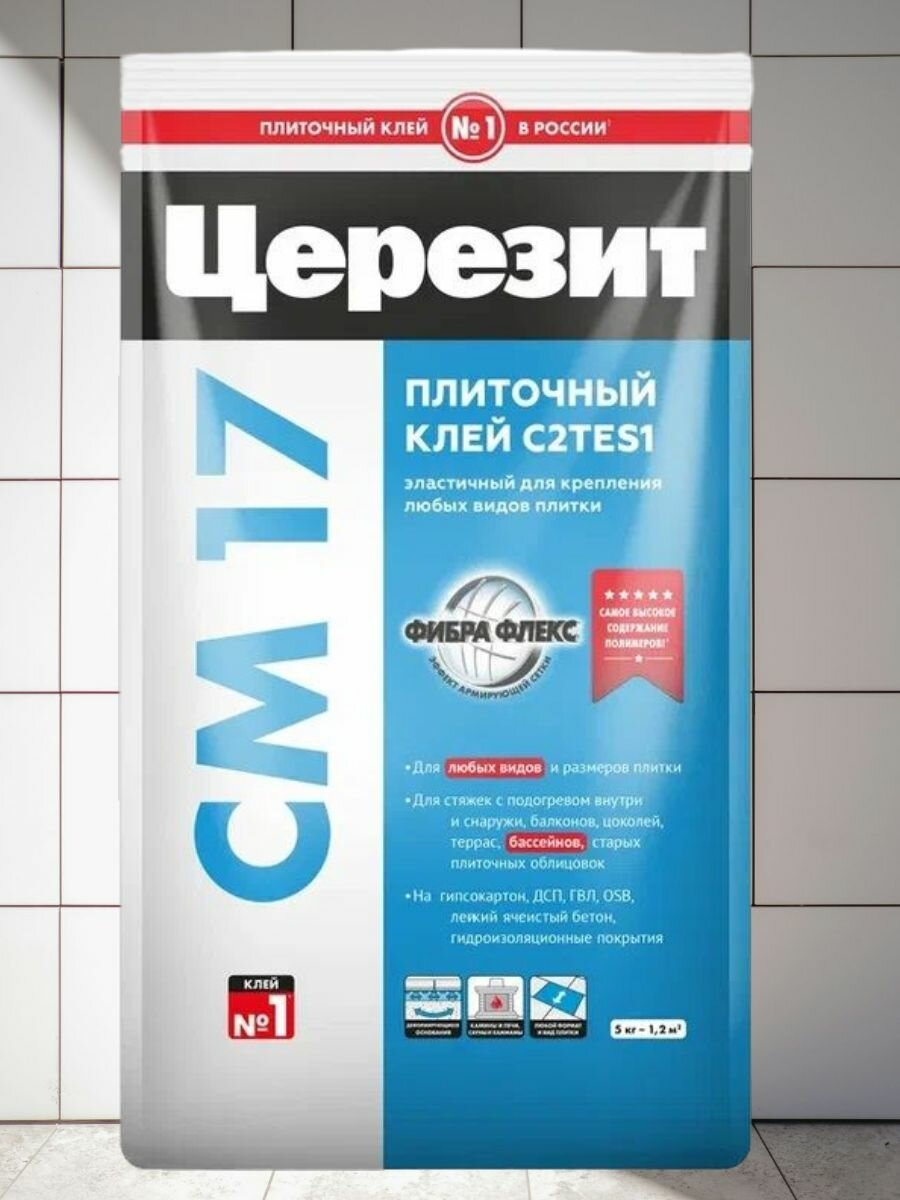 Плиточный клей Церезит (Ceresit) CM 17 , 5 кг, суперэластичный, для крупногабаритной плитки
