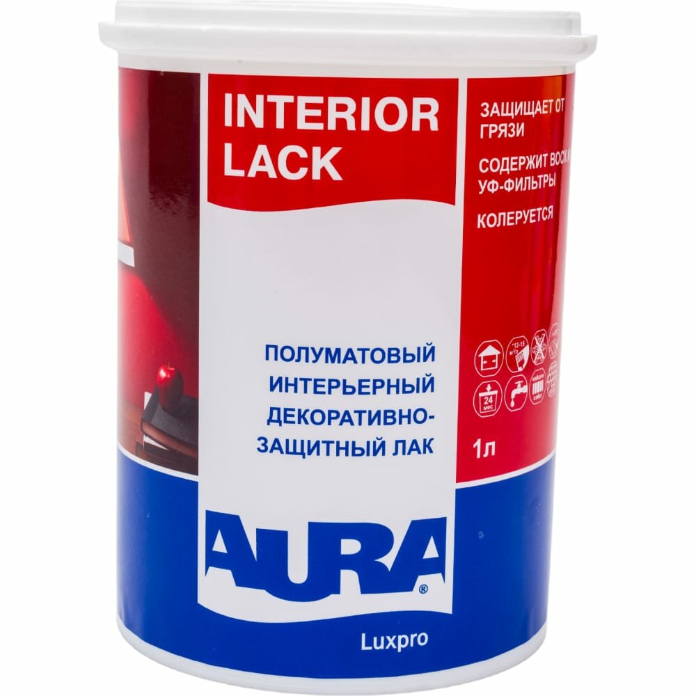 Купить Лак Интерьерный Aura Luxpro Interior Lack 1л Полуматовый, Декоративно-Защитный, без Запаха / Аура Люкспро Интериор Лак.