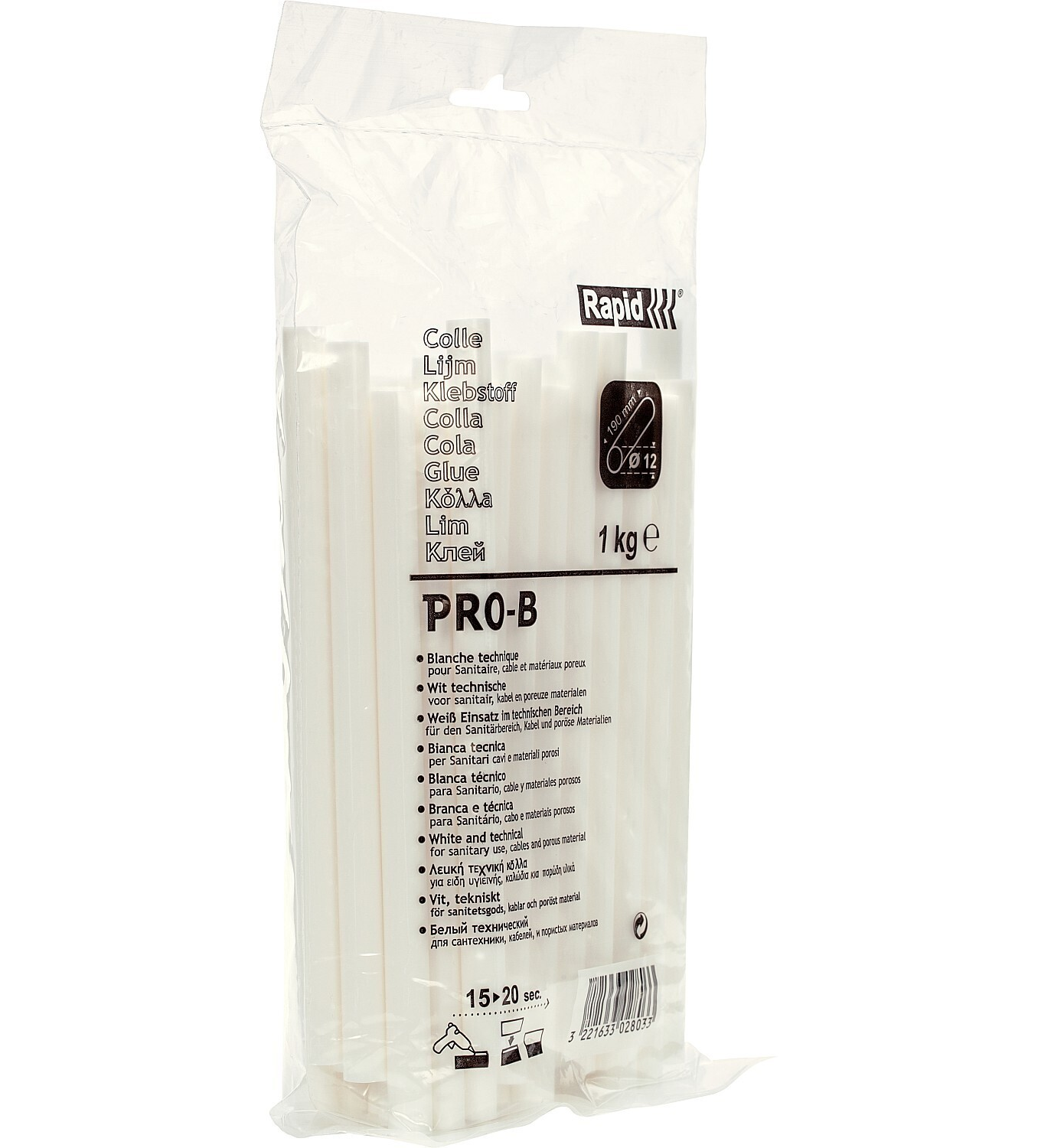 Профессиональный клеевой стержень сантехника и кабель, RAPID d12 x 190 мм, 1 кг, 40302803