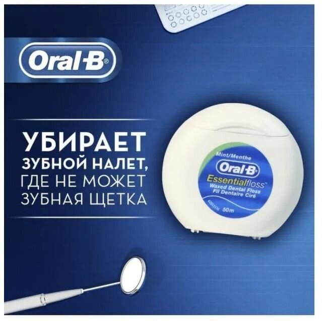 Нить зубная Oral-B Essential мятная, вощеная, 50 м