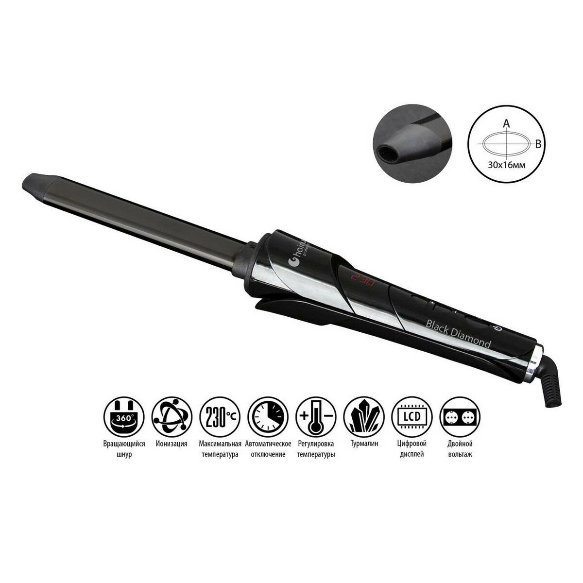 Плойка для волос овальная Hairway 04127 Black Diamond d 30x16 мм 3 м. 120-230 C 50 Ватт