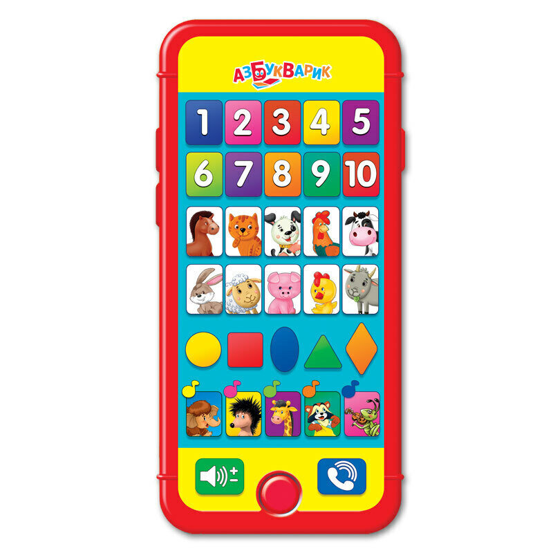 Смартфончик умный (счет, формы, цифры, животные, песни Шаинского), развивающая игрушка Азбукварик 08059-8