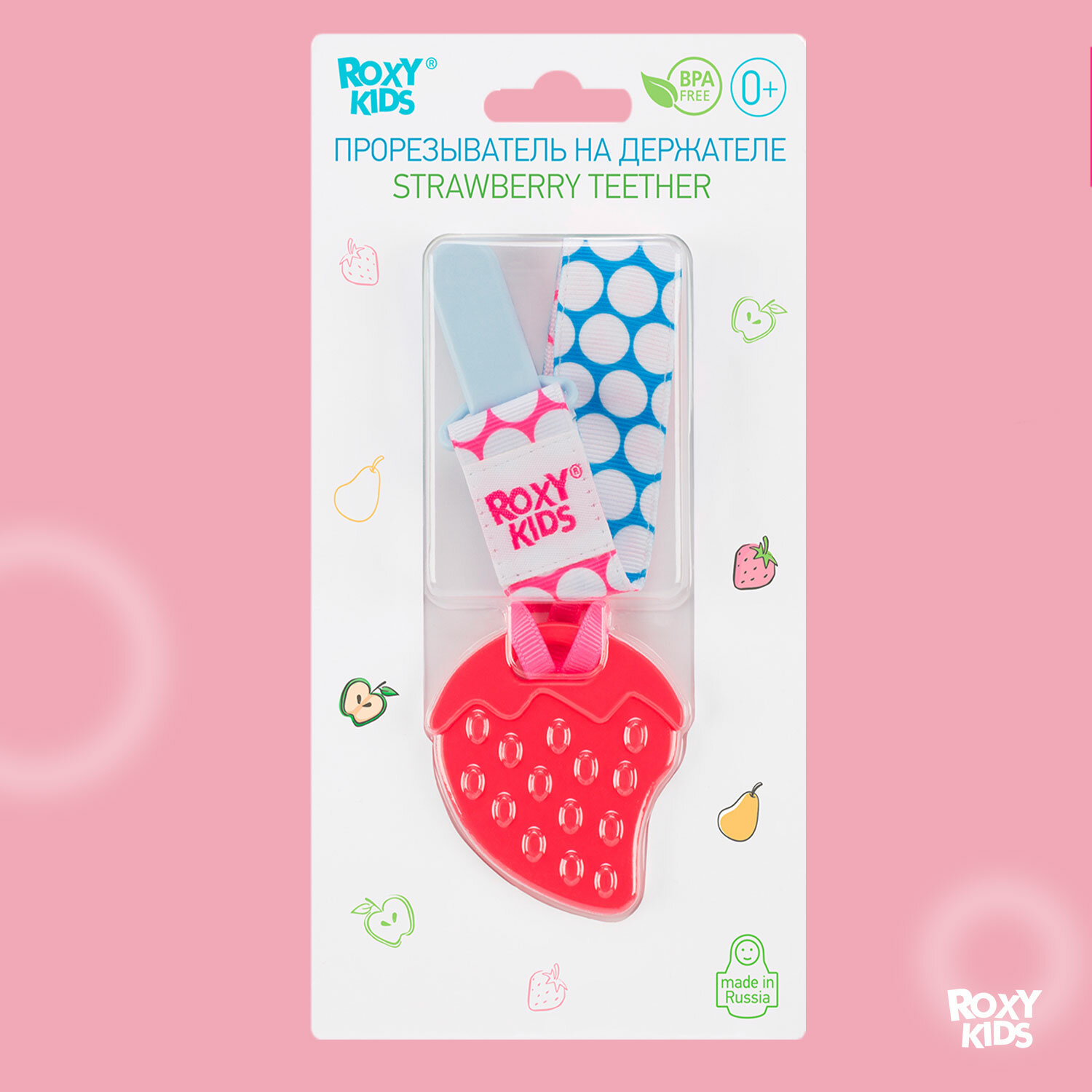 ROXY-KIDS прорезыватель д/зубов на держателе клубника 3+
