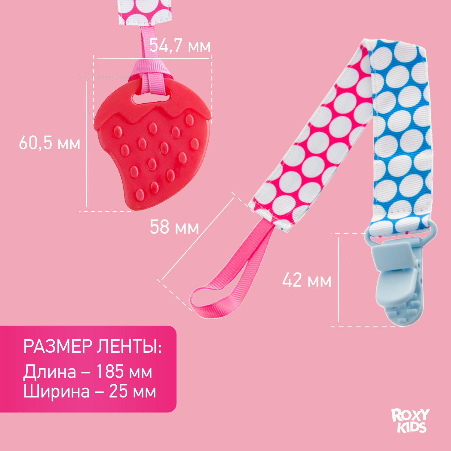 Прорезыватель на держателе ROXY Клубничка. Цвет голубой-розовый (кружочек). Материал держателя -полиэстер, АБС-пластик, Материал прорезывателя -ТЭП