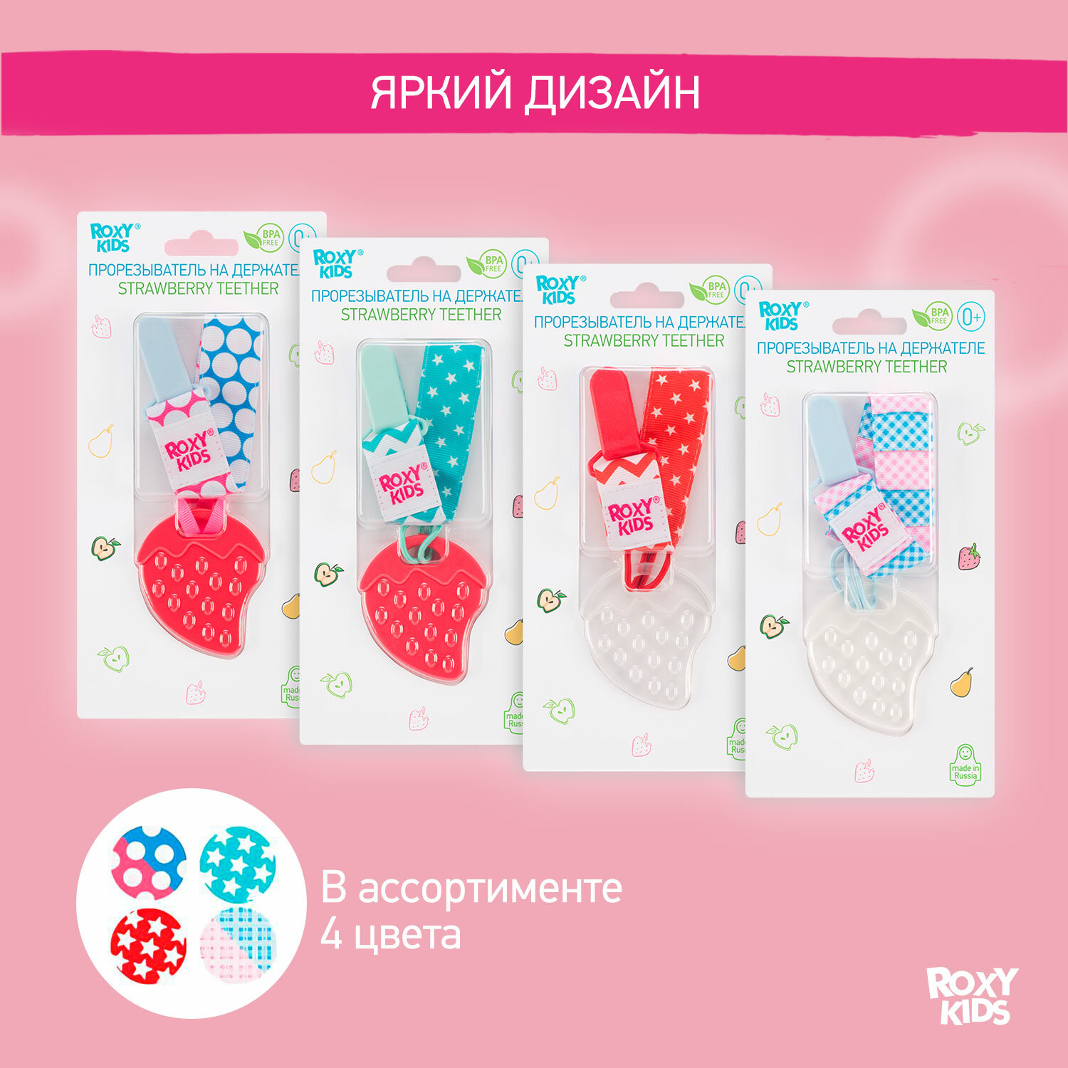 Купить Прорезыватель на держателе от ROXY KIDS.Клубничка. Цвет голубой-розовый.