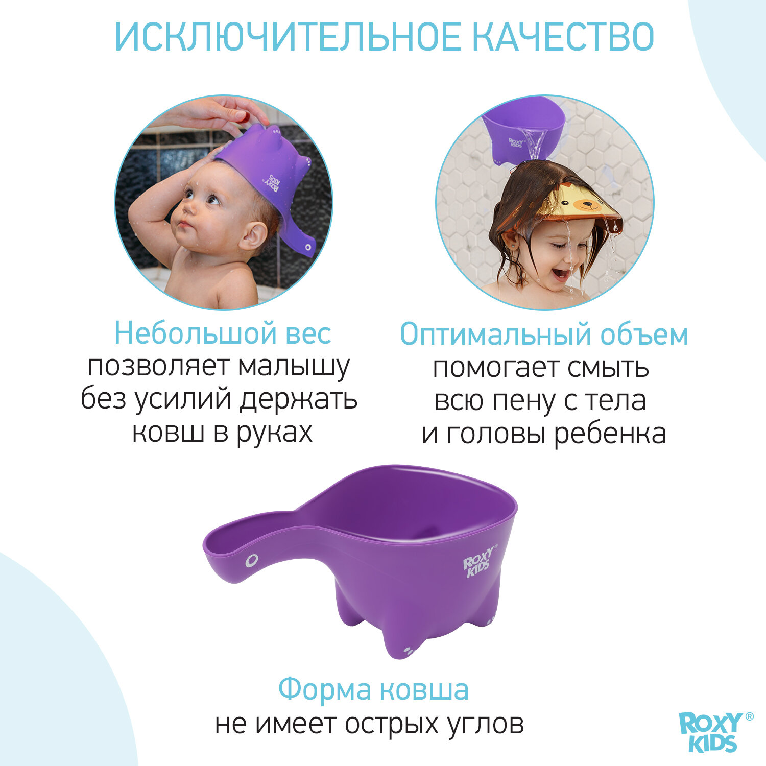 Ковшик детский для купания и мытья головы Dino Scoop от ROXY KIDS. Цвет фиолетовый.