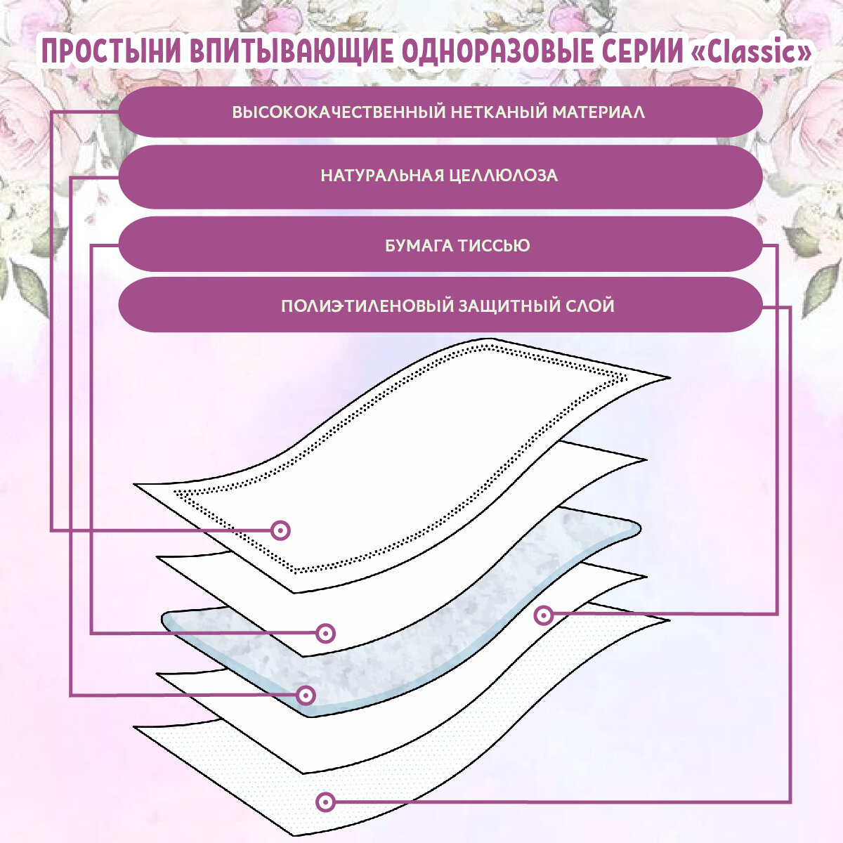 Пеленки-простыни впитывающие 60х40 см, пелигрин "Classic", комплект 30 шт., 5 слоев, одноразовые