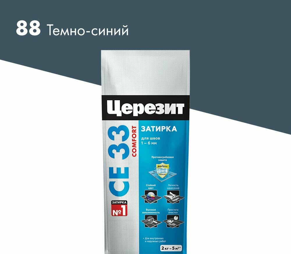 Церезит СЕ 33 затирка противогрибковая №88 темно-синяя (2кг) / CERESIT CE-33 Comfort затирка цементная для швов противогрибковая №88 темно-синяя (2кг)