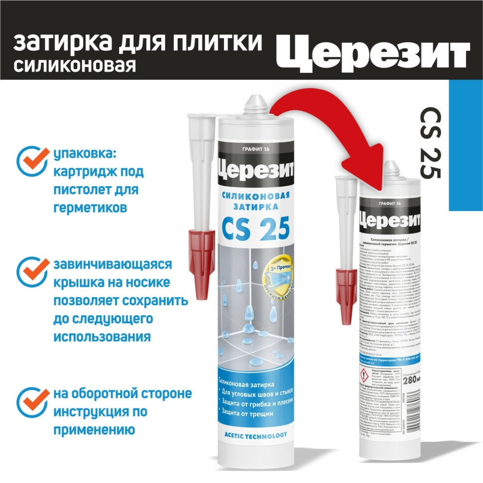 Затирка-герметик силиконовая Церезит CS 25 №16 "Графит", 280мл