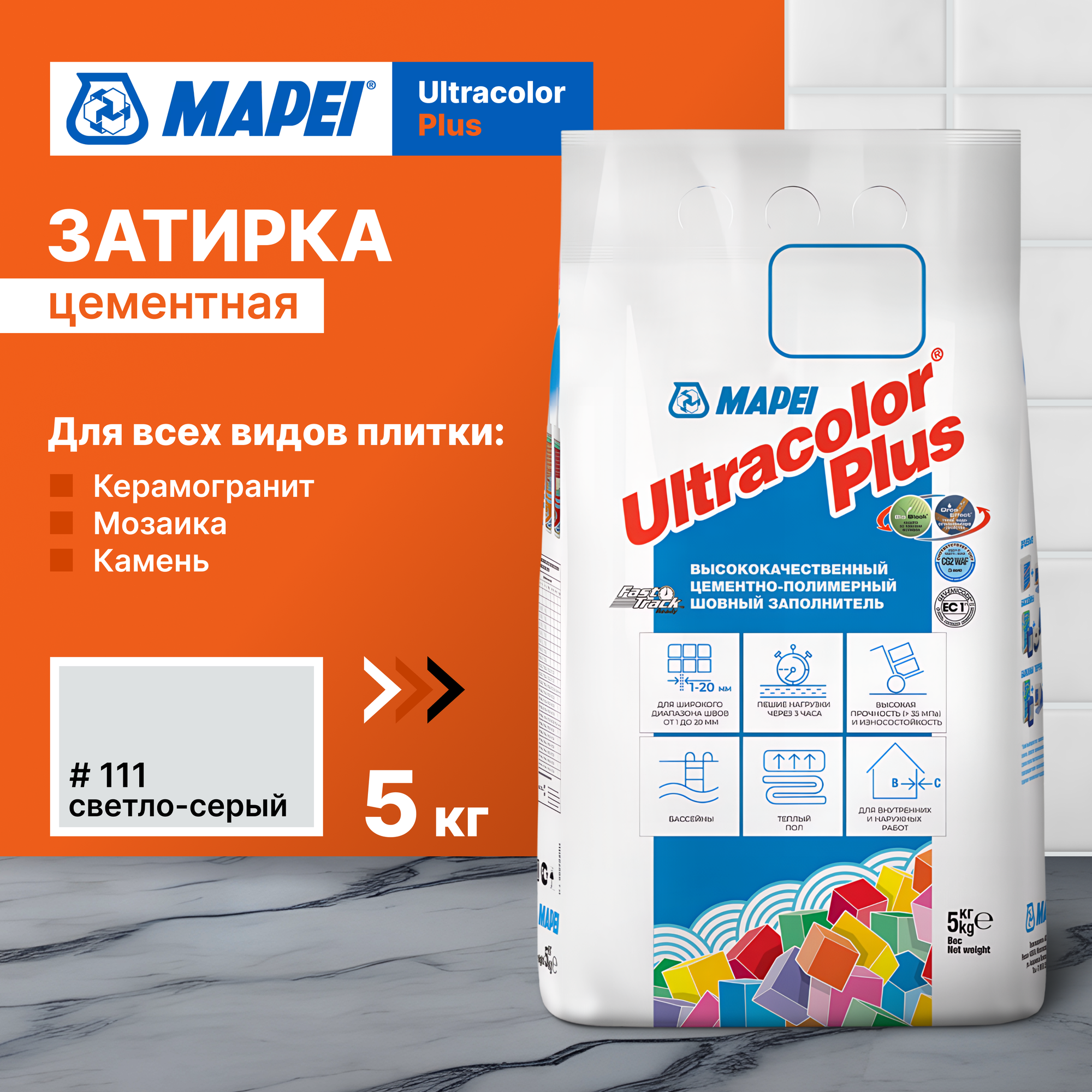 Купить Затирка Mapei Ultracolor Plus №111 светло-серая 5 кг