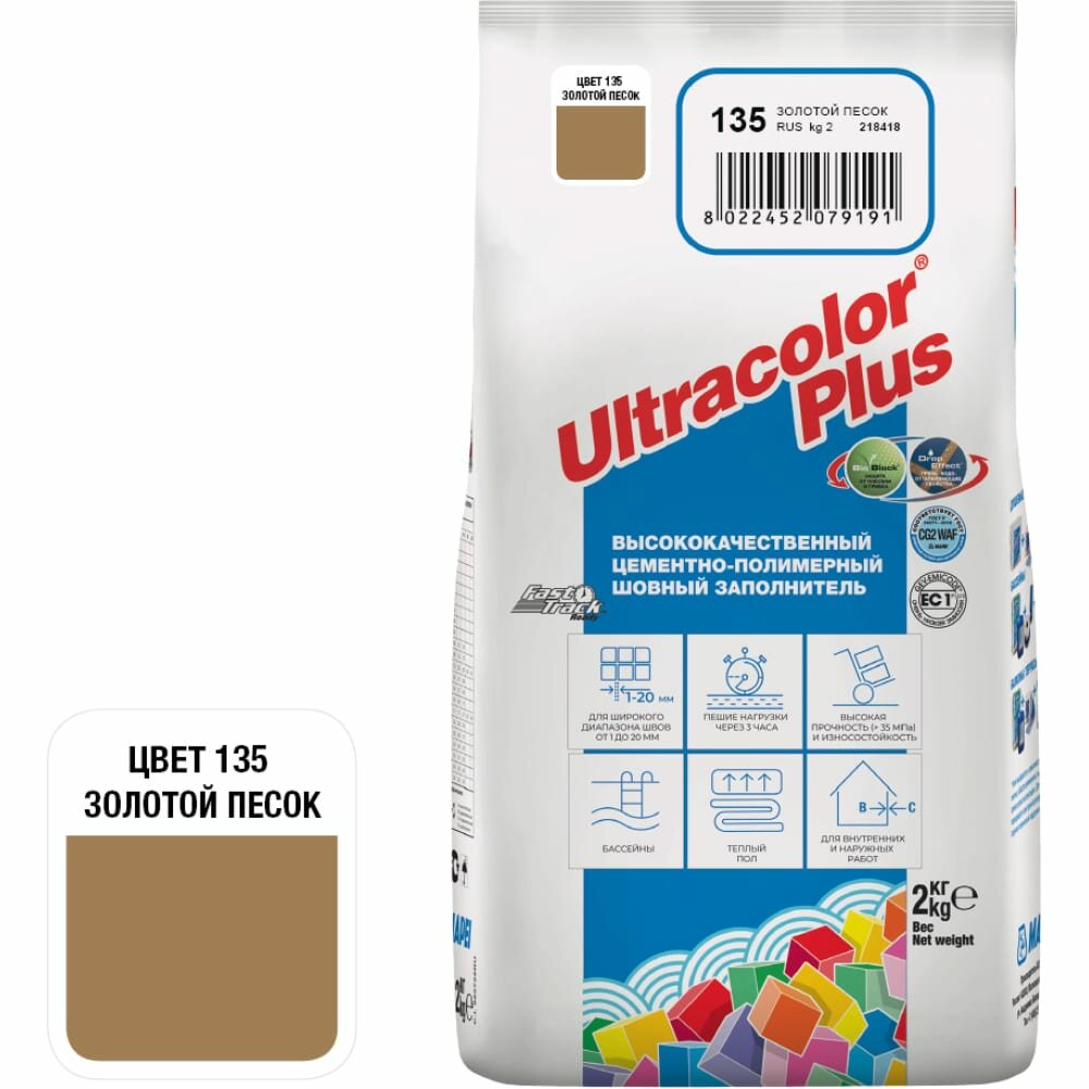 MAPEI ULTRACOLOR PLUS №135 затирка для швов с водоотталкивающим и антигриб. эф., золотистый песок 2кг 15938 6013502A
