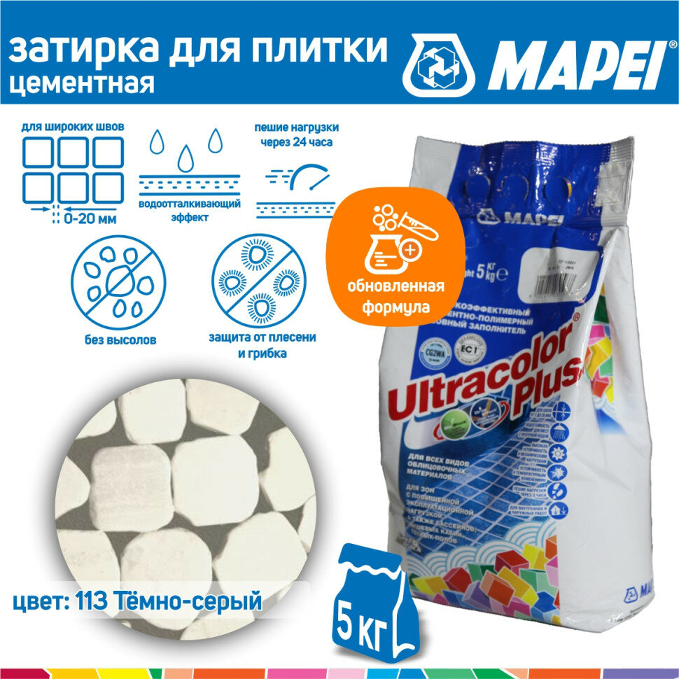 Купить Затирка Mapei Ultracolor Plus №113 темно-серая 5 кг