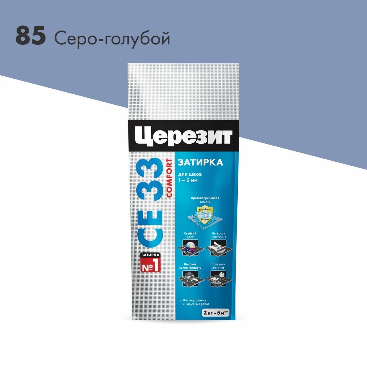 Купить Затирка цементная Церезит CE 33 comfort 85 серо-голубая 2 кг