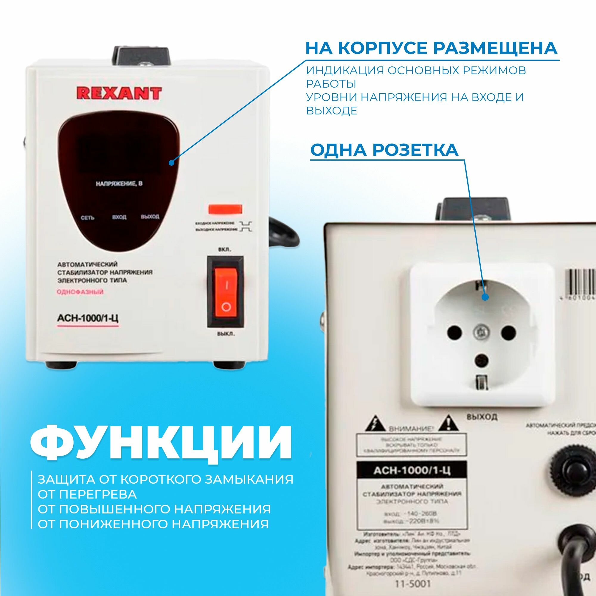 Стабилизатор напряжения Rexant Ach-1000/1-ц .