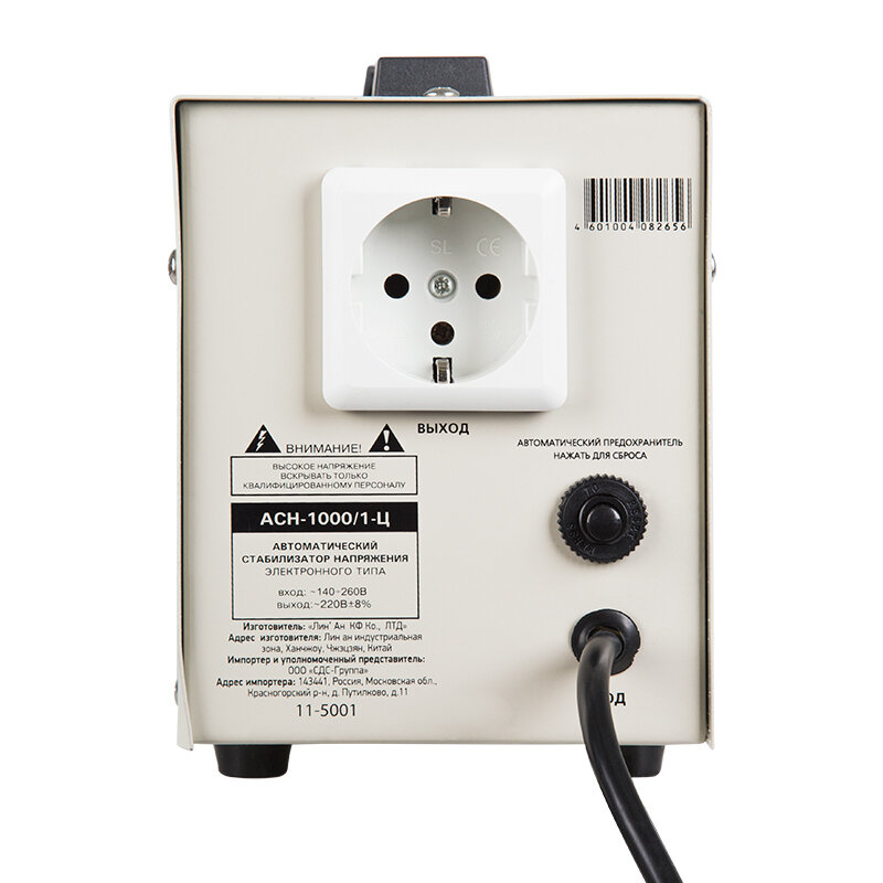 Однофазный стабилизатор (AСН-1 000/1-Ц) для защиты от перепадов в сети, В 140-260