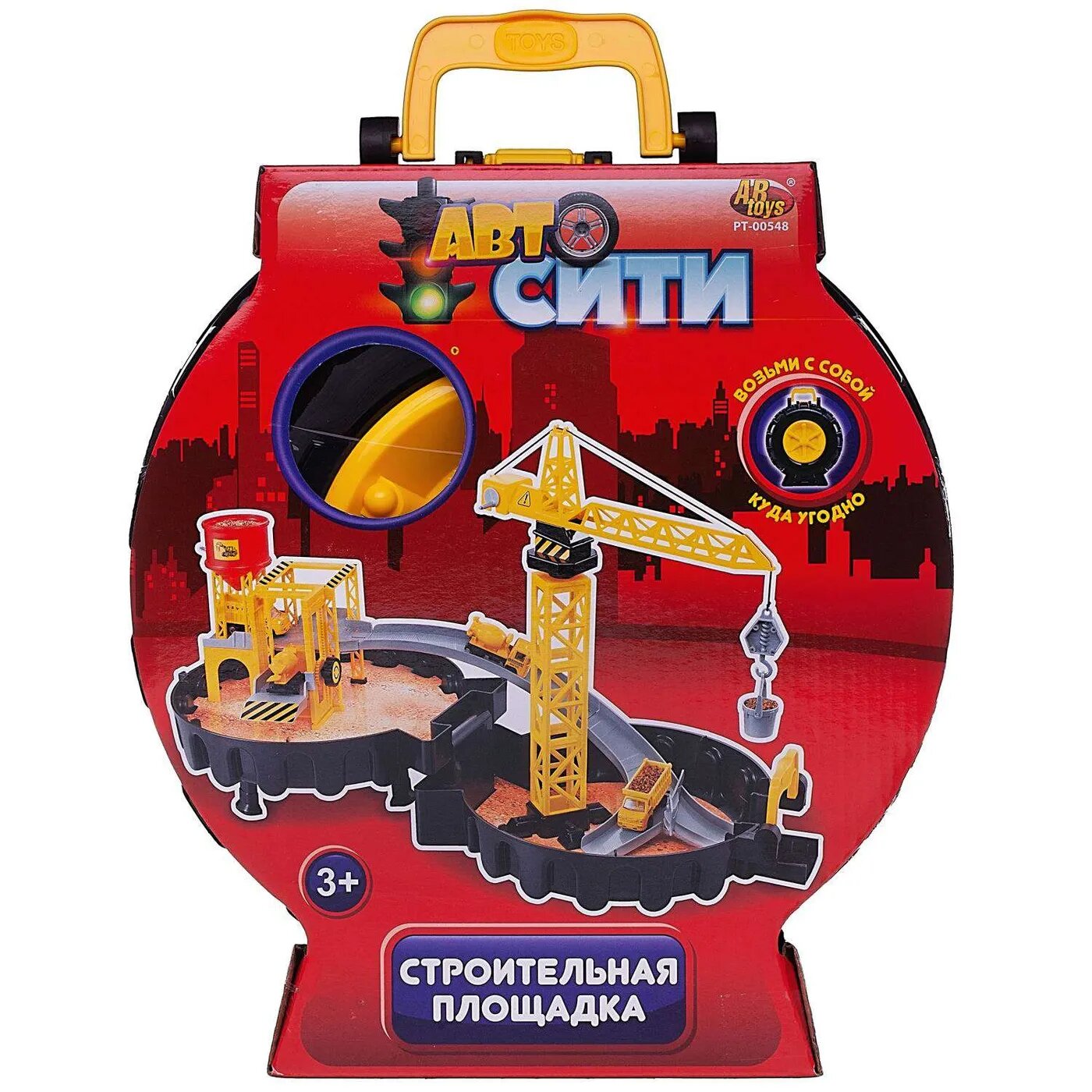 Парковка АвтоСити в чемоданчике-автошине Строительная площадка, 2-х уровневая - ABtoys [PT-00548(WA-D0128)]