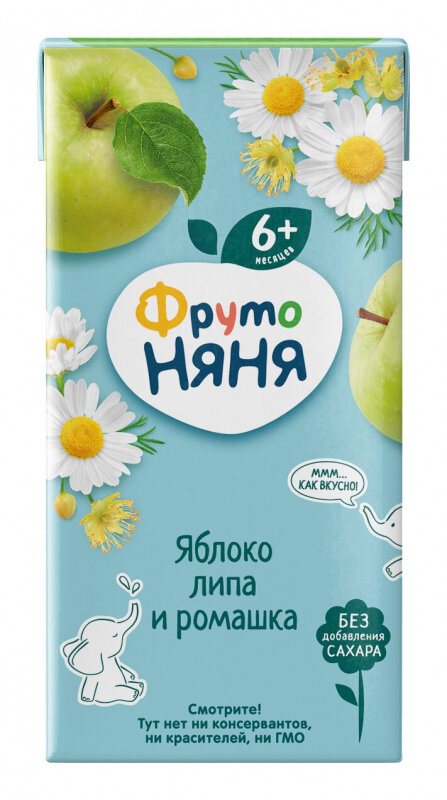 Напиток фрутоняня Яблоко, липа, ромашка неосветленный, с 6 месяцев, 200мл