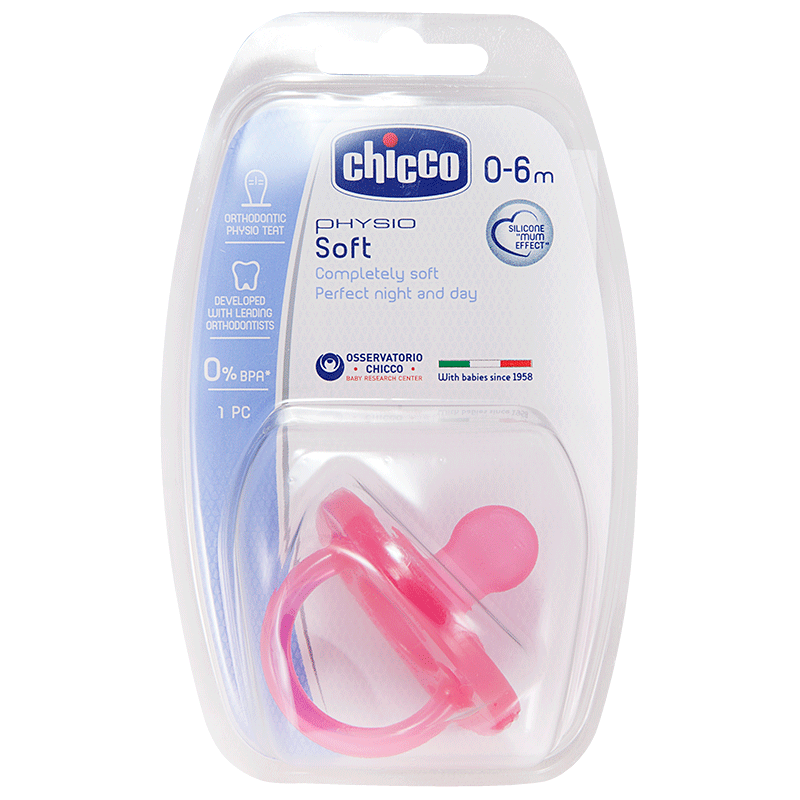 Чикко Пустышка Physio Soft,1шт.,0-6мес.,силикон,розовая