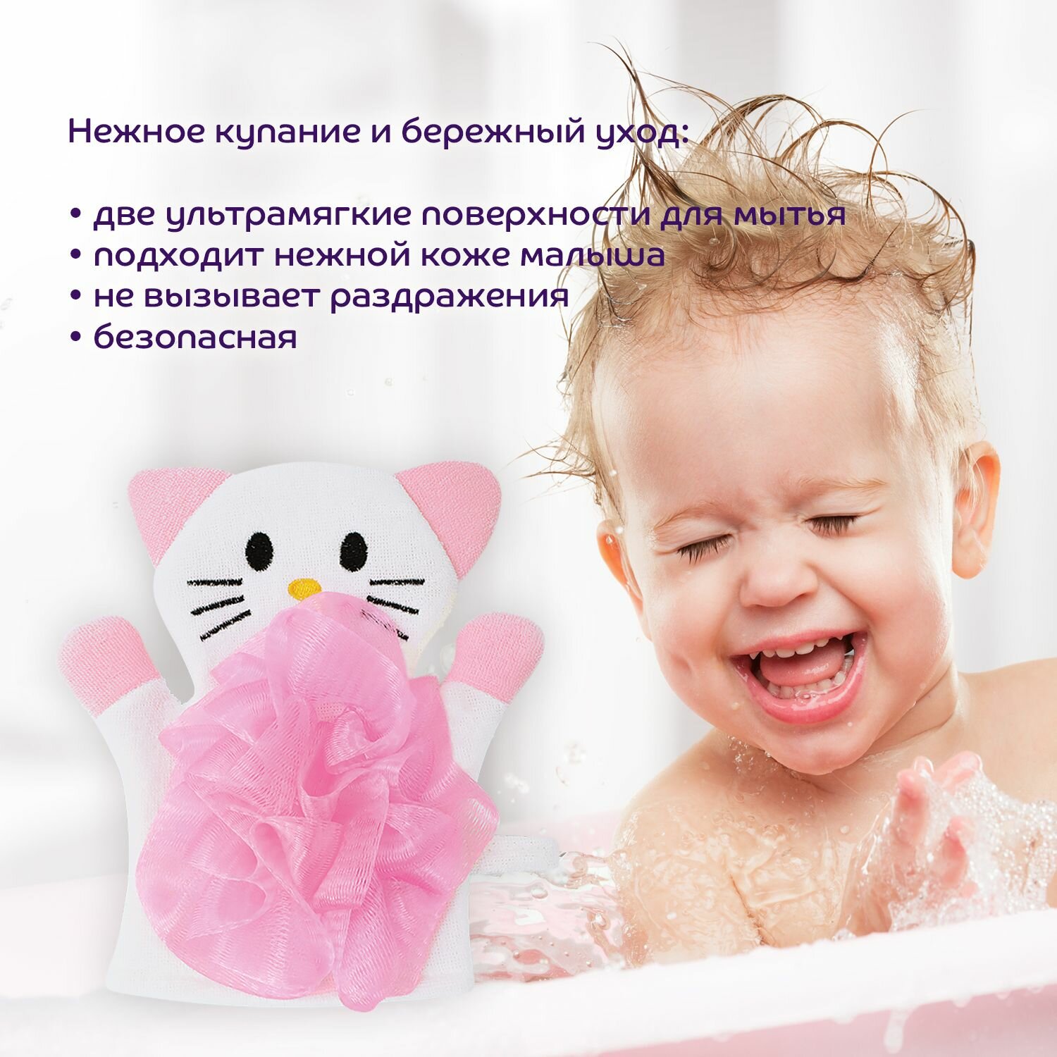 Мочалка детская «Кошечка», от 0 мес.