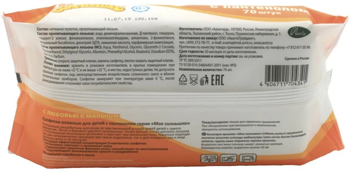 СохранитьСалфетки влажные детские с пантенолом Мое Солнышко №70 интересное: