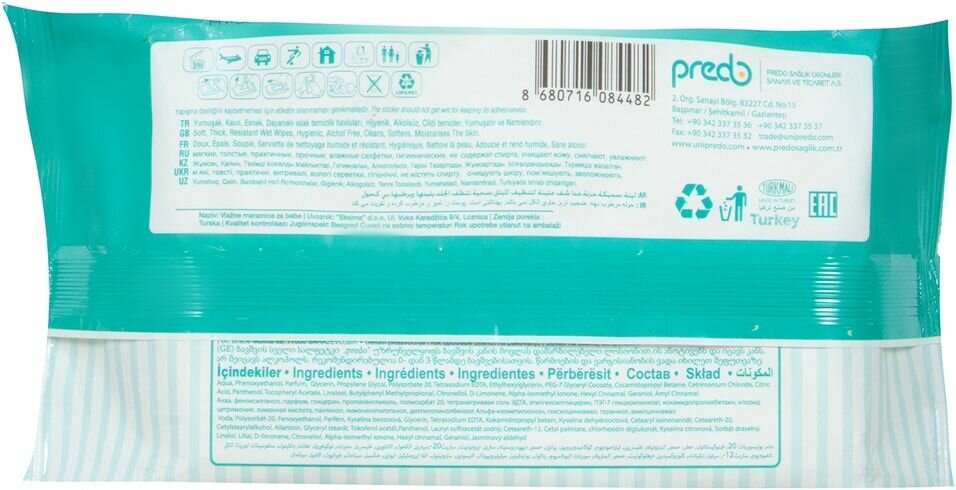 Салфетки влажные Predo для детей, 120 шт, с клапаном