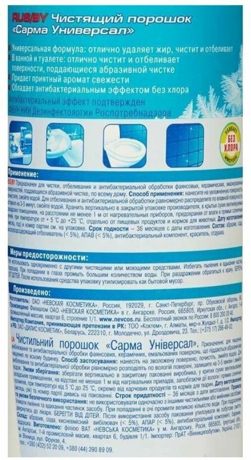 Невская косметика Чистящий порошок Sarma Универсал с антибактериальным эффектом 400 гр