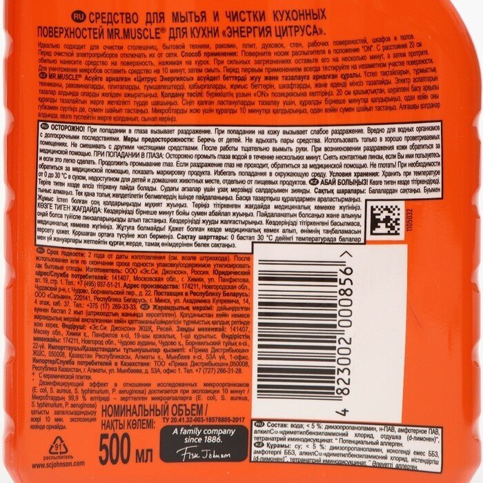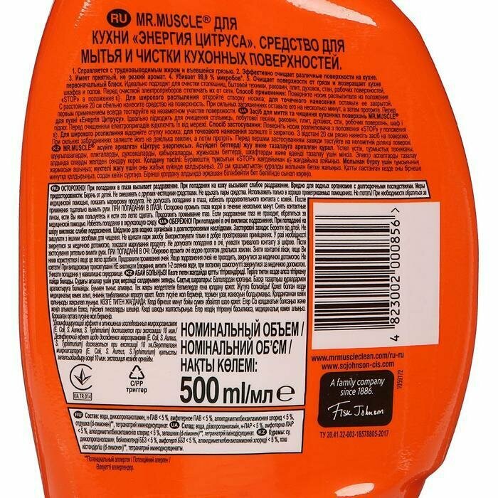 Средство моющее универсальное 500мл мистер мускул энергия цитруса для Кухни курок • SCJ 1 шт