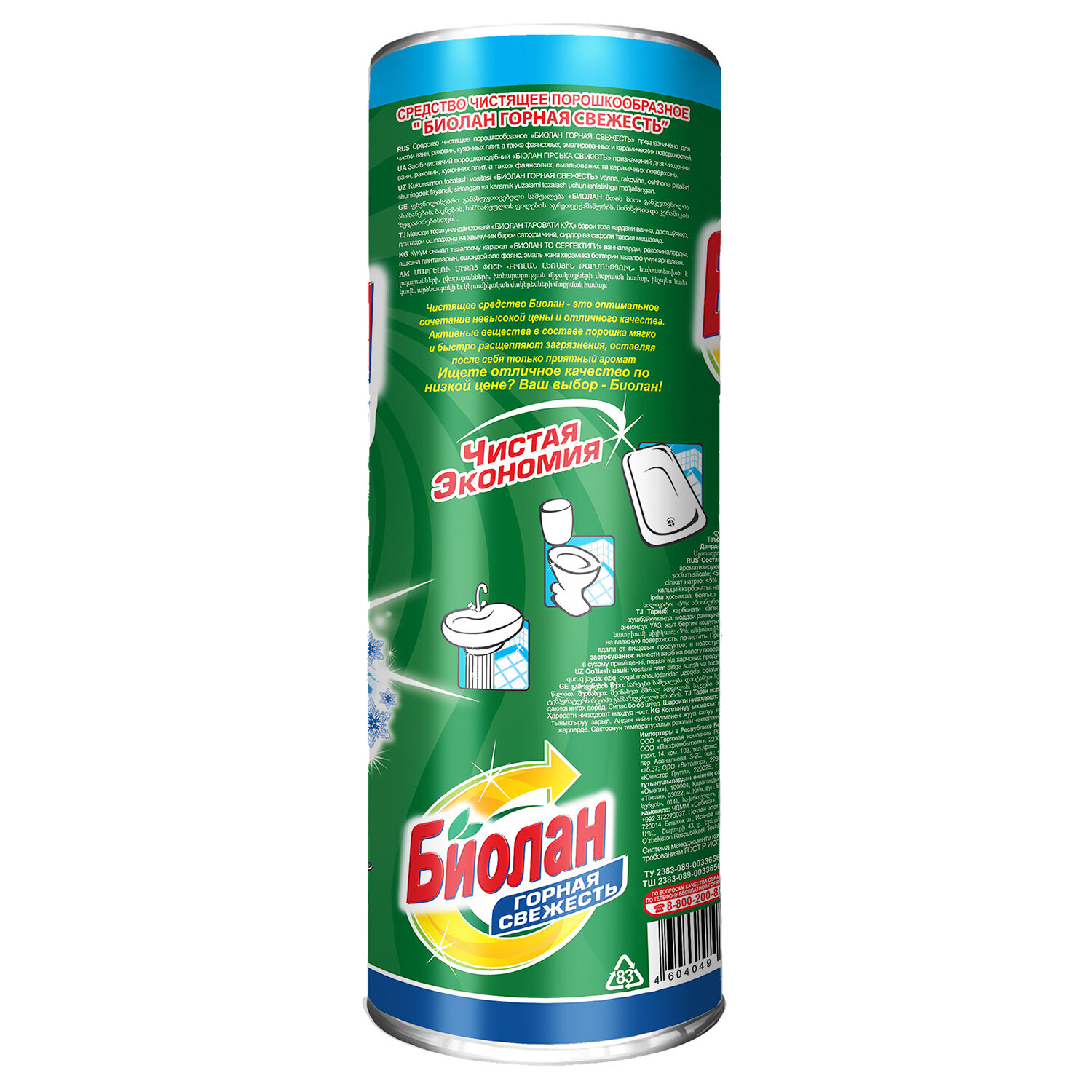 Чистящее средство 400 г, БИОЛАН "Горная свежесть", порошок, 33-6