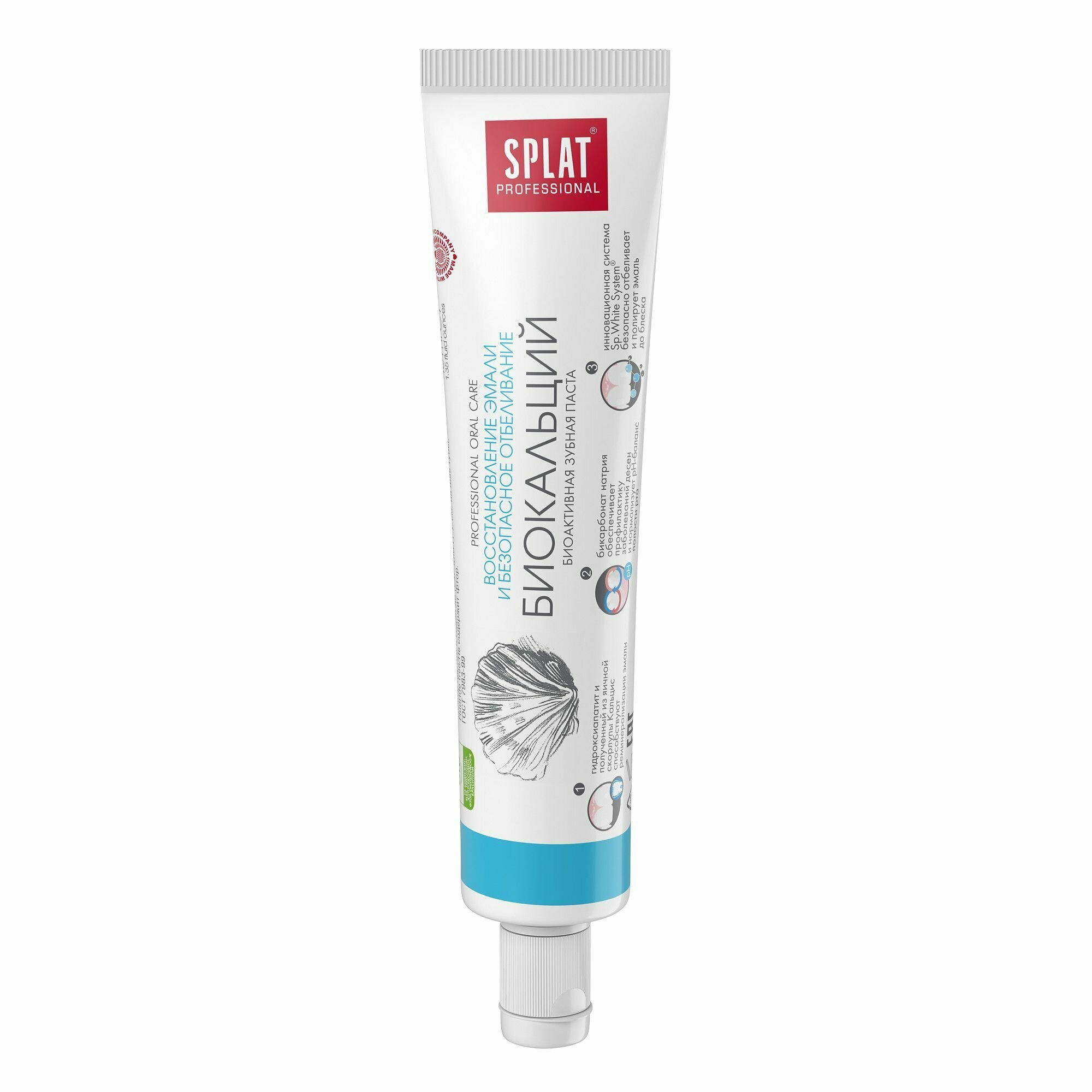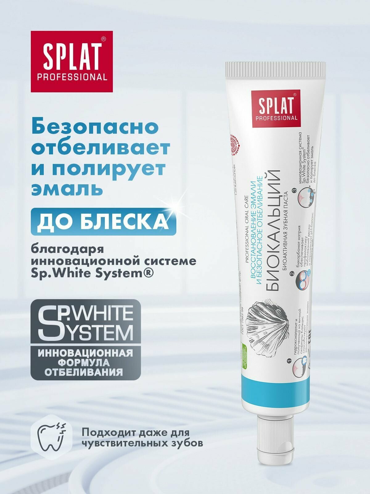 SPLAT Professional Биокальций Биоактивная зубная паста для восстановления эмали и безопасного отбеливания 100 мл