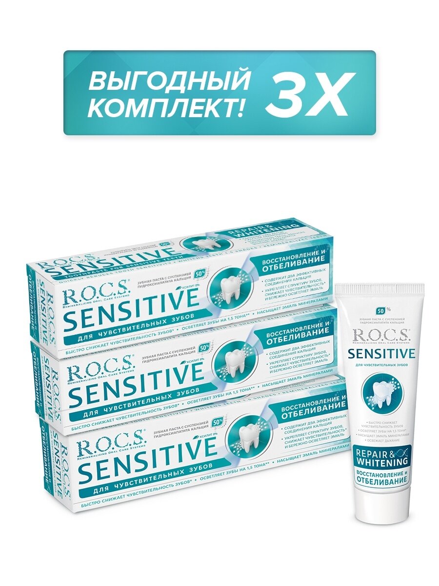 R.O.C.S. / Зубная паста Sensitive Восстановление и Отбеливание 75мл 3 шт / Артикул 415208/3